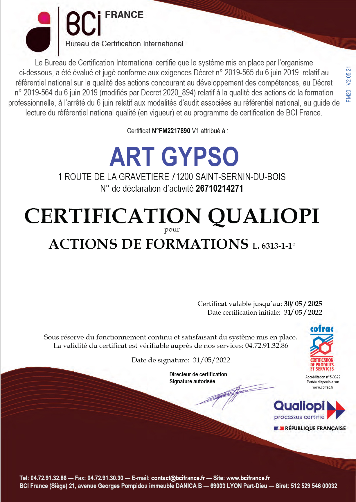 ART GYPSO propose une formation théorique et pratique qui permet d'acquérir des compétences et des aptitudes en techniques de contentions et d'immobilisations dans un souci d'excellence professionnelle, et d'obtention de retombées positives sur la qualité et la sécurité des soins dispensés aux patients.